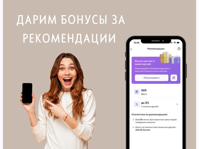 Эксклюзивные бонусы и акции только для пользователей приложения, покупки с выгодой оффлайн и заказы онлайн, прямая связь с компанией и push-уведомления по всем важным событиям (акции, начисление бонусов и другое).